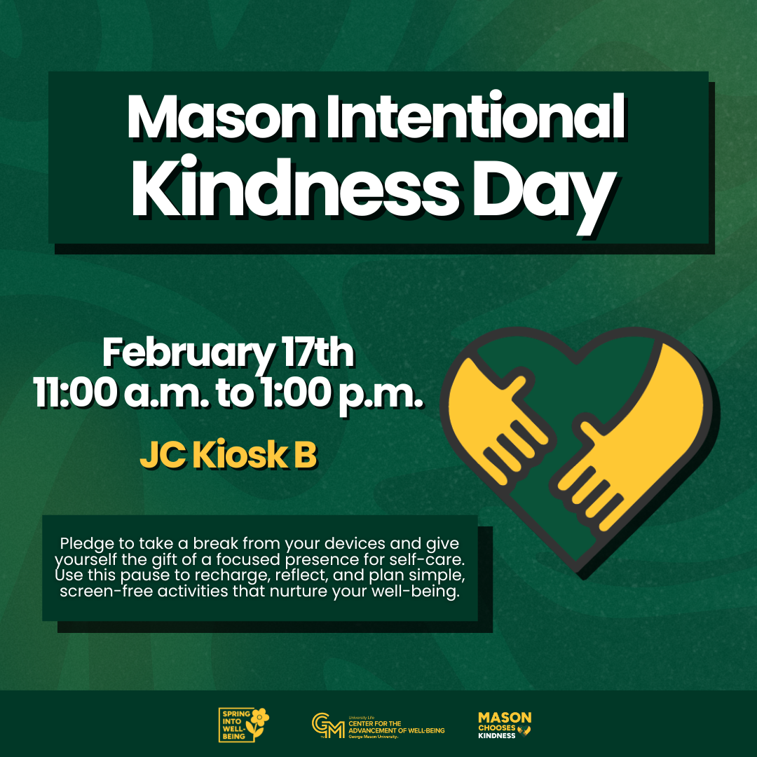 Co-hosted by the Center for the Advancement of Well-Being (CWB), and Mason Chooses Kindness (MCK), celebrate Mason Intentional Kindness Day & Spring into Well-Being by […]