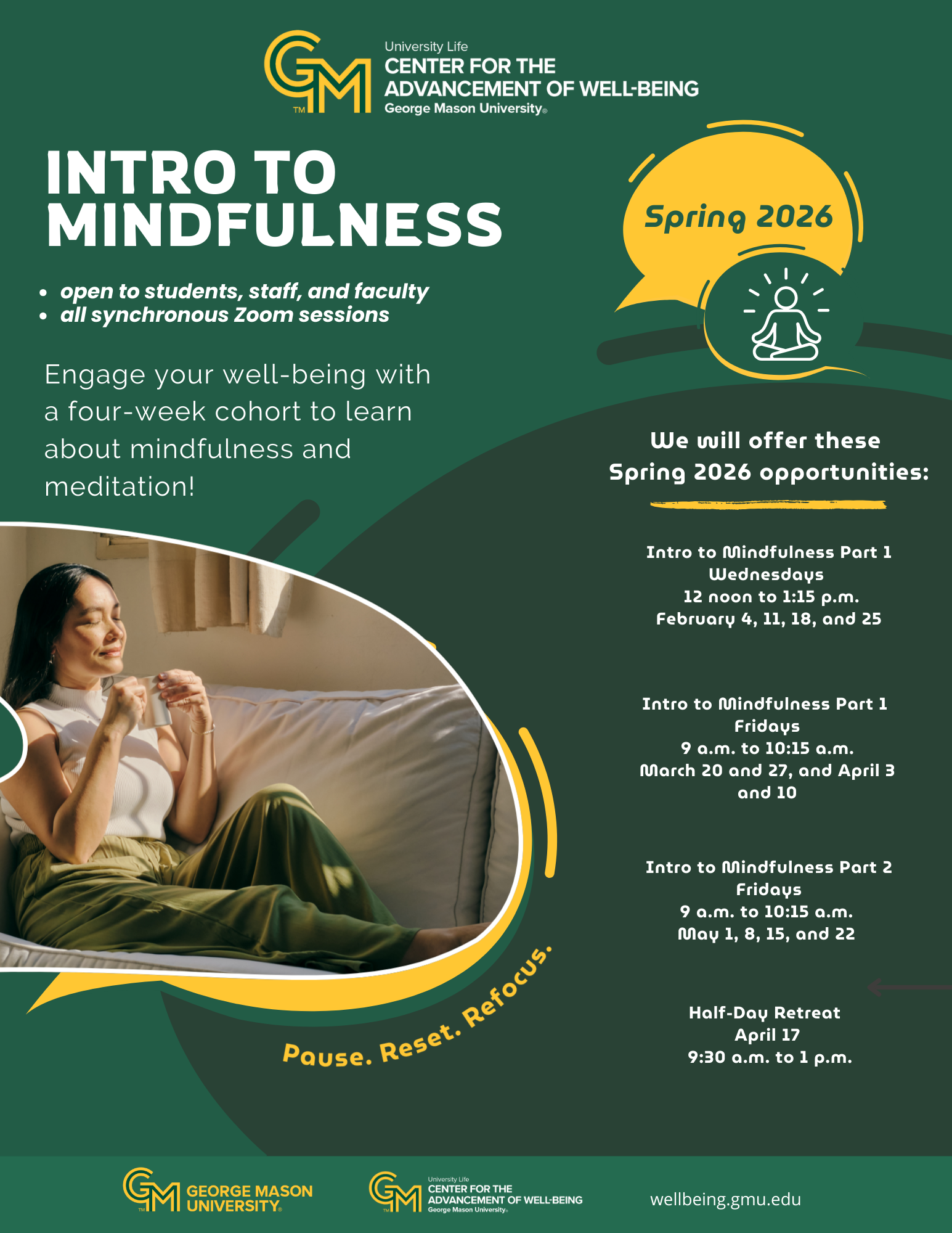 Mason students, staff, and faculty can learn more about mindfulness and meditation through two different four-week programs created by the Mindfulness Institute for Emerging Adults […]